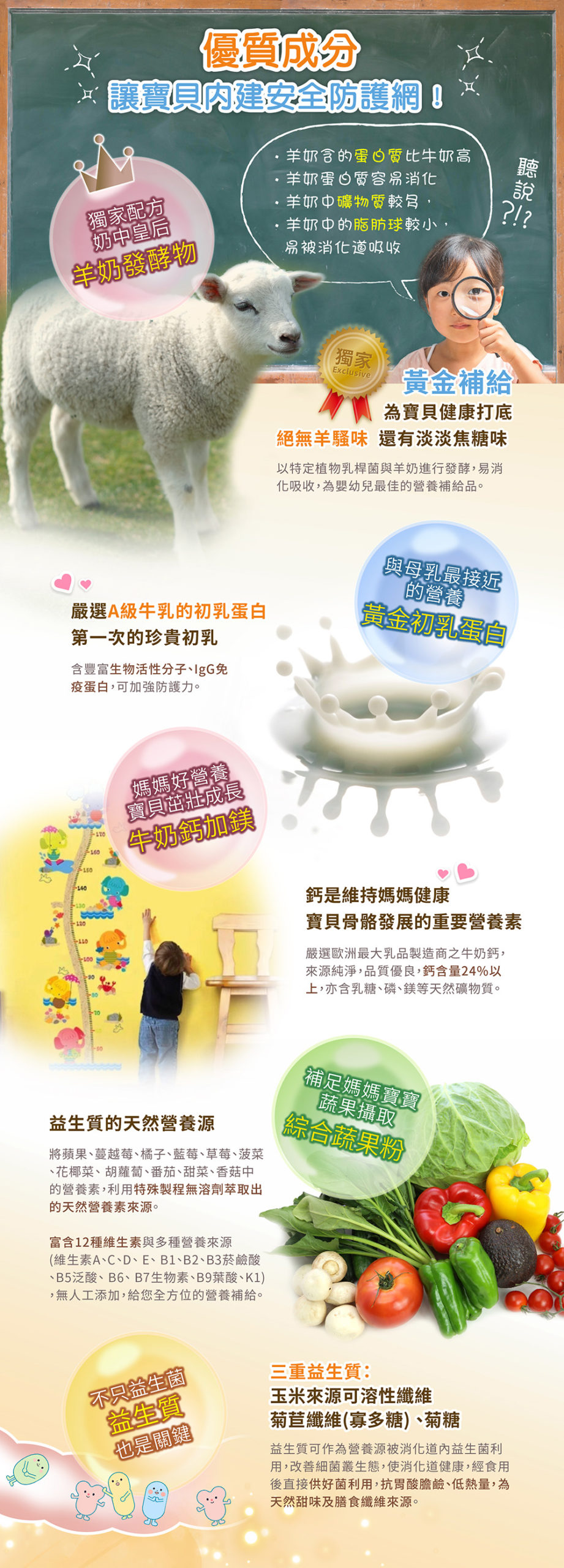 2. 本產品含有牛奶類乳糖、牛初乳、牛奶鈣、羊奶醱酵物