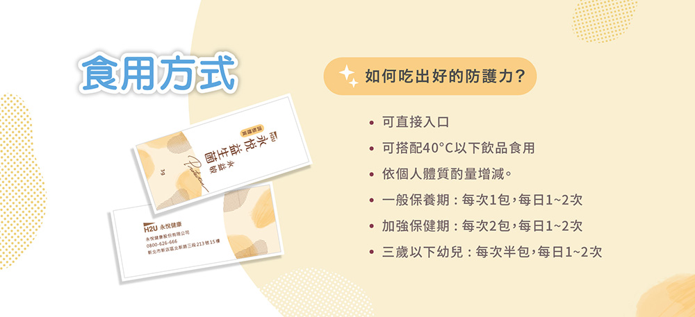 - 建議用法:可直接入口,亦可搭配 40°C 以下飲品食用 依個人體質酌量增減。
